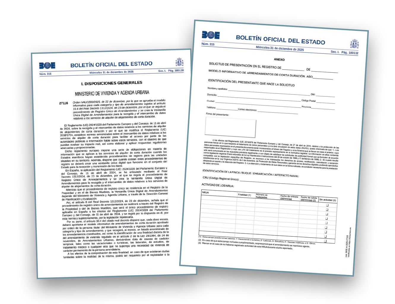 Si en el año 2025 solicitó a un Registro de la Propiedad o de Bienes Muebles uno o varios NRUA sobre un mismo CRU (finca, buque, embarcación o artefacto naval) y obtuvo la asignación de dicho número, en febrero de 2026 deberá presentar el depósito correspondiente del modelo informativo de arrendamientos de corta duración que indica la Ley.