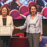 La presidenta del Comité Europeo de Derecho Rural, Esther Muñiz, hizo entrega a la decana del Colegio de Registradores, María Emilia Adán, de un diploma acreditativo con mención especial al mérito por el apoyo de los registradores a las incitativas de Derecho agrario.