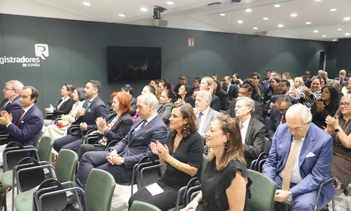En sus palabras de bienvenida, la decana del Colegio animó a los asistentes a que sigan trabajando por un Registro al servicio de la sociedad, y añadió que la seguridad jurídica es fundamental, porque sin seguridad jurídica no hay desarrollo humano.