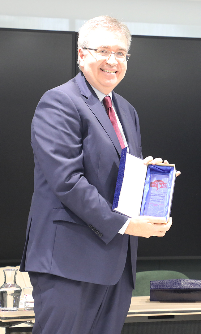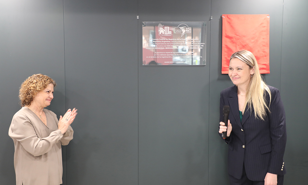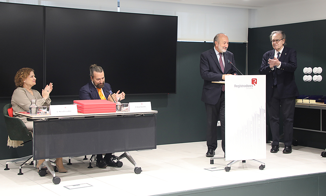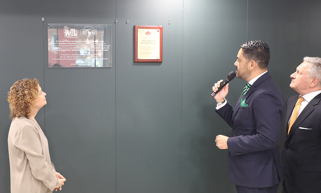 El momento más emotivo del acto fue en el que se hizo un reconocimiento público a las instituciones y personas que han colaborado durante estos 25 años en el proyecto, a los que la decana del Colegio entregó una placa conmemorativa. Además de los citados Antonio Pau y Miguel Ángel Cortés, fundadores del CADRI, fueron galardonados en representación de las instituciones Antón Leis, director de la AECID; José Federico Ludovice, embajador y representante de SEGIB y Marco Antonio Sepúlveda, presidente de la Asociación de Egresados de CADRI-AEC. También se reconoció a integrantes del personal de apoyo del Colegio como Manuel A. Lorenzo, María García-Sauco, Ainhoa Albaina y M.ª Carmen Pons. Del ámbito de la universidad recibieron la distinción Juan Arrieta, decano de la Facultad de Derecho la Universidad Autónoma de Madrid y en representación de la Universidad Complutense lo recogió Mónica Fuentes. También fueron acreedores de este reconocimiento los directores del CADRI inmobiliario Rosa de Couto, Sergio Llebaría, Francisco Palacios, Antonio Manuel Morales, Máximo Juan Pérez y Ángel Valero; y los directores del CADRI mercantil Belén Madrazo Meléndez y Mónica Fuentes. Igualmente recibieron el premio los directores de Relaciones Internacionales del Colegio de Registradores Enrique Maside, Fernando P. Méndez, Nicolás Nogueroles, Almudena del Río, Fernando de la Puente y Pilar García Goyeneche. Finalmente, la decana del Colegio hizo entrega del reconocimiento al actual director de Relaciones Internacionales del Colegio, Sergio Saavedra.