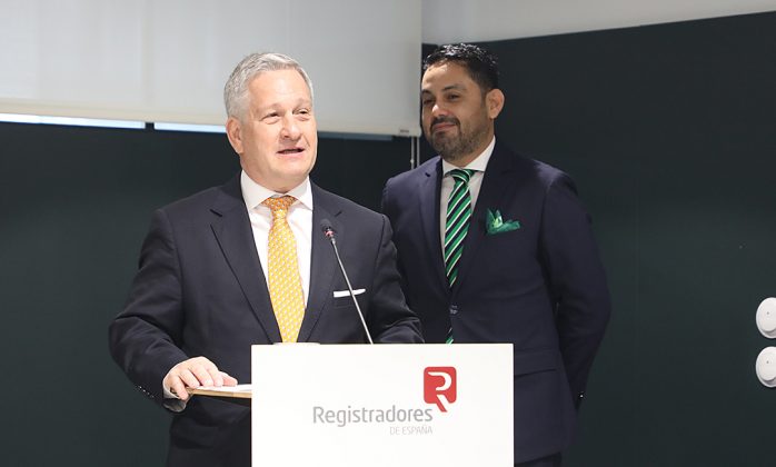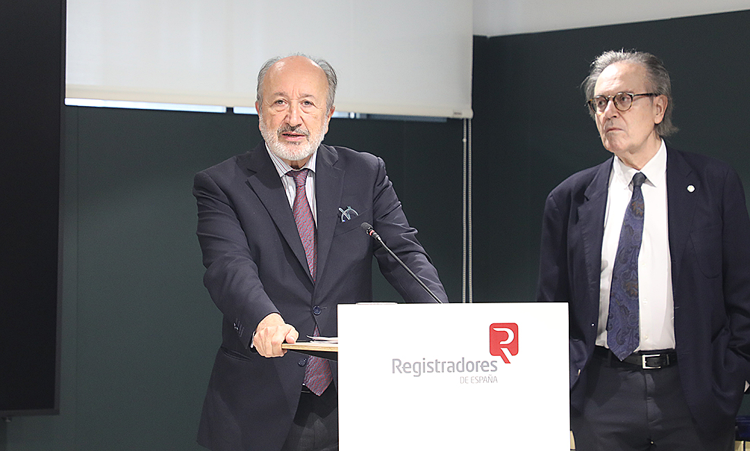 A continuación el director de Relaciones internacionales dio la palabra a Antonio Pau y a Miguel Ángel Cortés, decano del Colegio de Registradores y secretario de Estado de Cooperación Internacional en el año 2001, respectivamente, que fueron los que pusieron en marcha desde sus respectivos cargos este curso a través de la firma de un convenio que permitía a las instituciones que representaban aunar esfuerzos dentro del marco de sus competencias, para atender al fortalecimiento, consolidación y desarrollo de los sistemas registrales existentes en la comunidad jurídica iberoamericana.