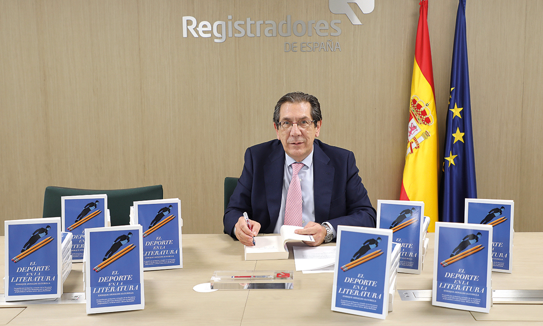 EL MAGISTRADO DEL TRIBUNAL CONSTITUCIONAL, ENRIQUE ARNALDO, visitó la sede del Colegio de Registradores para presentar y firmar ejemplares de su último libro, El deporte en la literatura, en un acto organizado por la revista Registradores que reunió a destacados representantes de la administración, la política, la judicatura, la universidad o el periodismo, además de a numerosos representantes del Cuerpo de Registradores. Los asistentes al encuentro pudieron departir con el autor sobre el proceso creativo de una obra en la que se cuenta como la literatura ha narrado la evolución del deporte desde Grecia y Roma hasta la actualidad, en una sociedad profundamente deportivizada.