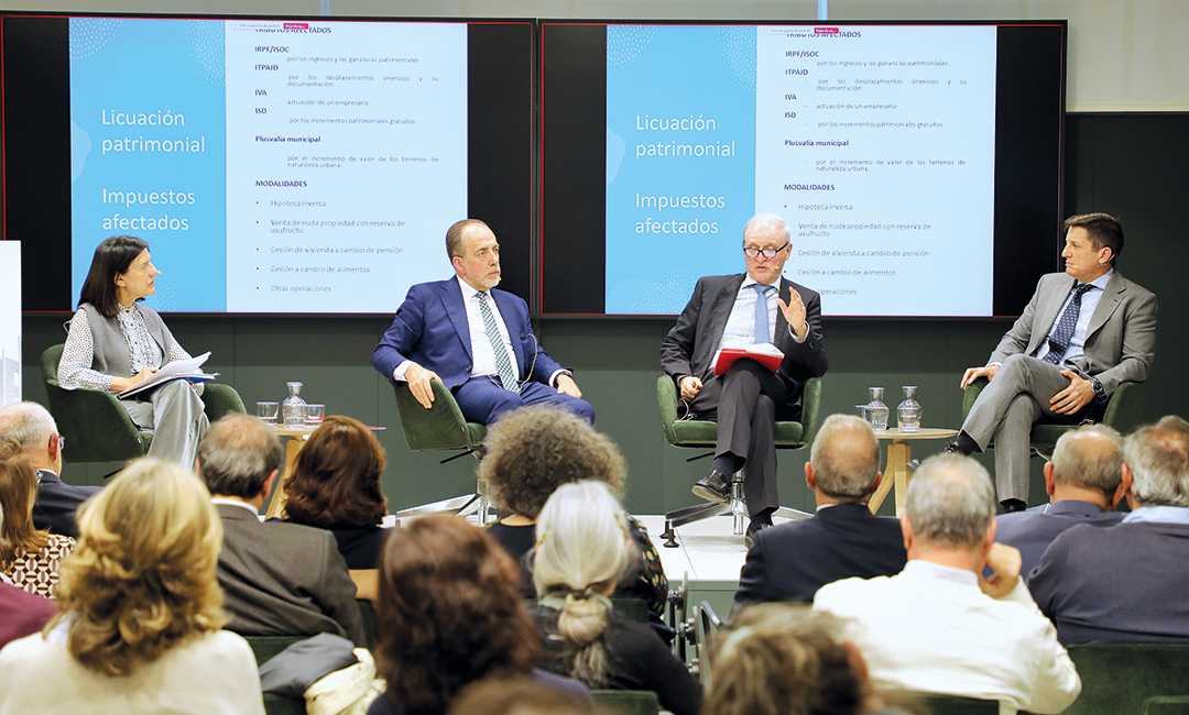Desde el punto de vista fiscal, Carlos Colomer explicó que la licuación patrimonial engloba «un conjunto de operaciones que permiten obtener liquidez manteniendo la vivienda y sin necesidad de abandonarla”, pero alertó de la elevada carga impositiva que debe soportar el inmueble en estas circunstancias. En cuanto a las figuras más habituales, destacó que la hipoteca inversa es la mejor tratada fiscalmente, aunque su escaso uso contrasta con el mayor éxito de la venta con reserva de usufructo, o la cesión de vivienda a cambio de alimentos.